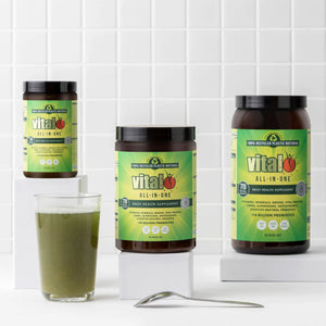 The Vital brand began in 2000 with the development of Vital Greens, now named Vital All-In-One, a comprehensive multi-nutrient supplement. The formula was recently renamed Vital All-In-One to highlight it is much more than just greens, but gives you everything you need, all in one!